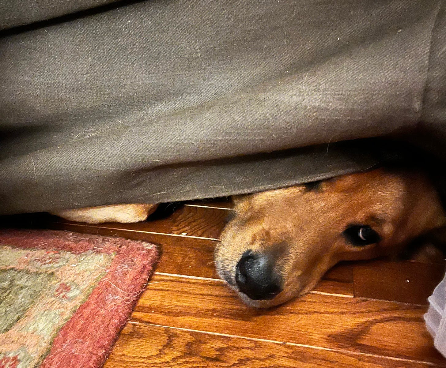 Last Friday was Halloween and our dear sweet CJ spent the bulk of the day hiding. All of the noise and people make her a little bit anxious.